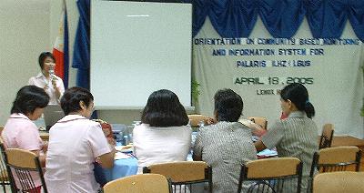 | The Provincial Health Office and the Provincial Population Office, together with MSH-Lead, conducted the orientation and training for the implementation of a modified CBFPMIS. It was held at the Lanox Hotel in Dagupan City. The modified CBFPMISwill provide a better appreciation of the FP needs of women of reproductive age in the community. April 18, 2005 |