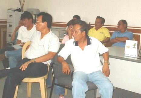 | The Municipal Health Officer meeting with the members of the Association of Barangay Captains of Calasiao at the Mayor�s Office. It is during these times that the MHO discuss health issues and concerns with the local officials and update them on the various health programs and activities. May 26, 2005 |