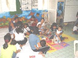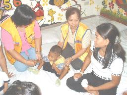 | The female chapter of Kiwanis Club in Calasiao conducted a feeding activity for the benefit of the disabled children undergoing therapy at the BBC-STAC 11 st the Calasiao Municipal Health Office last August 15, 2005. Present were: Kwn. Helen M. Aquino, President; Kwn. Flora dela Fuente, Kwn. Gloria Manamtam, Kwn. Corazon Bauzon, Kwn. Dorry Pena, Kwn. Teng Bulario, Kwn. Trinidad Laforteza, Kwn. Norma Joves and Kwn. Milrose Caburian. |