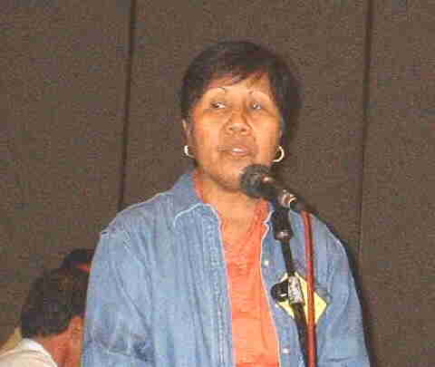 | Ms. Luz Muego, the Pangasinan Provincial Population Officer, giving her reactions regarding the reports on the level of the CSR implementation in the participating local government units. |