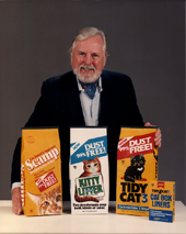Ed thought that this was going to be a pretty good idea. He filled ten paper bags with five pounds of clay and wrote "Kitty Litter" on them. He called the local pet store and told them of his new idea. The store owner hardly believed that anyone would be willing to pay Ed's asking price of $.65 for a five pound bag; Ed's reply "So give it away!". He did, and soon people were willing to pay for Ed Lowe's "Kitty Litter".