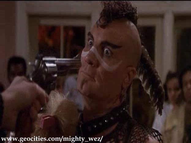 | In this film, he plays the leader of a party crashing gang of villains on bikes. This gang is conjured up by Lisa, a computer-made woman, to give her makers more self-confidence. During a big party, 'Wez' and his gang come to ruin the party with motors and guns. 'Wez' humiliates the boys by telling about their weird habits. When their girlfirneds are being harassed, the boys finally get angry, and held at gun-point, 'Wez' and his gang are made to leave. |