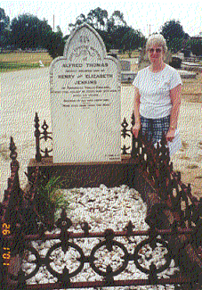 | We found the poignant tombstone of Alfred Thomas Jenkins at Kerang in country Victoria. Alfred died on the 27 May 1894 aged 25 - so far from home and family. His parents in Tunbridge Wells had this tombstone erected over his grave. | ||||||||||||||||||||||||||||