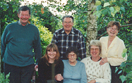 | Some wonderful relatives we met in England in June 1999. Standing - Sam Payne, John and Jennifer Purkiss. Seated, Grainne Purkiss, Grace Payne and Miriam. |
