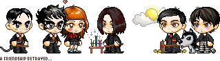 I'm updating with more from Hogwarts, but this time around we'll be traveling much further back in time to meet Mooney, Wormtail, Padfoot and Prongs aka Remus Lupin, Peter Pettigrew, Sirius Black and James Potter. Of course, the group wouldn't be complete without Lily Potter and Severus Snape with his little chemistry set. Bases are once again inspired by Maple Story. Until my next update!