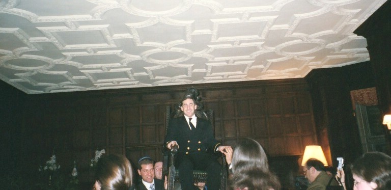 Daniel in the chair (they soon got in trouble for lifting the castle's antique chair)