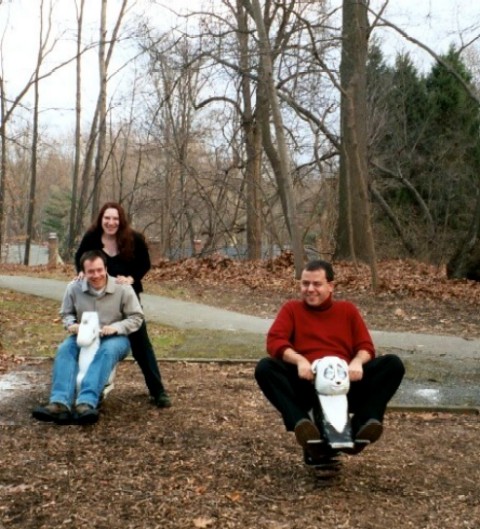 Kendra, Eytan, and Chris in front of Eytan's apartment in Arlington