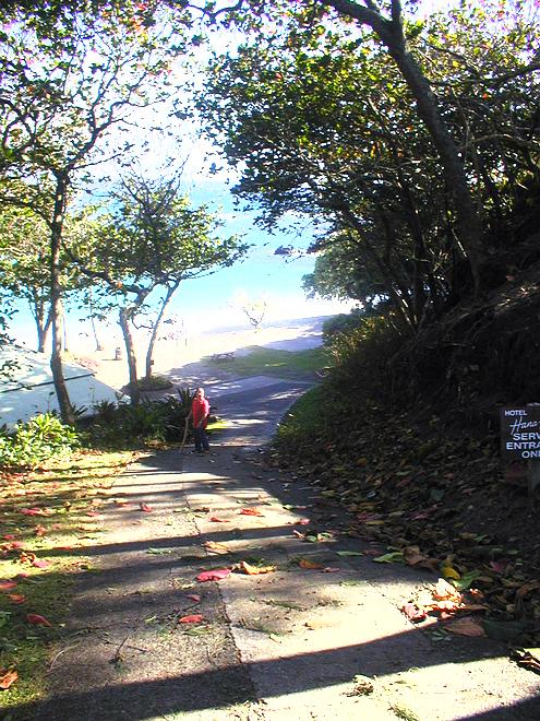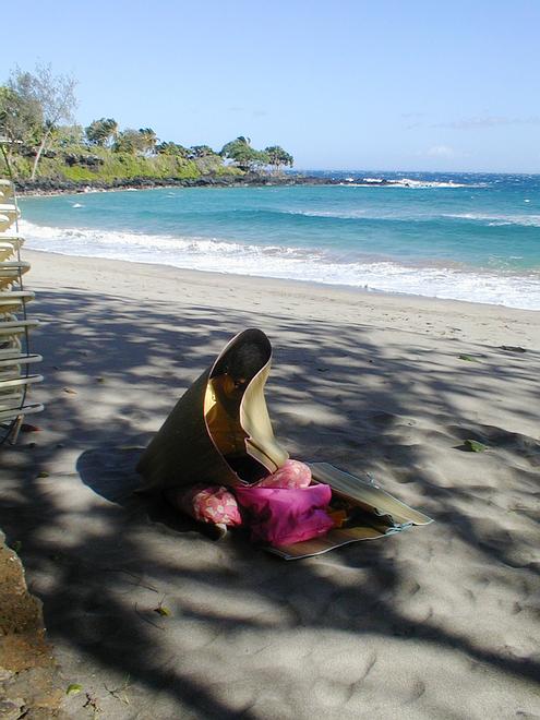 Delphine trying to keep the sand out of her eyes on a WINDY beach