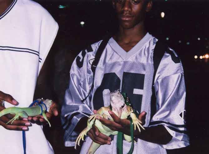Some guys in Towson with iguanas