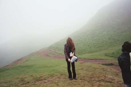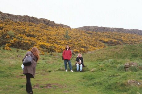 Kristin, Christina, and Rebecca part of the way up Arthur's Seat