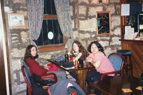 Rebecca, Christina, and Rebecca at the bar in Culcreuch Castle
