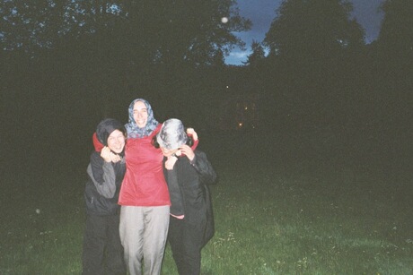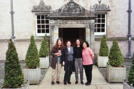 Kristin, Rebecca, and Christina goofing around on the grounds of Culcreuch Castle (where we stayed in Fintry)