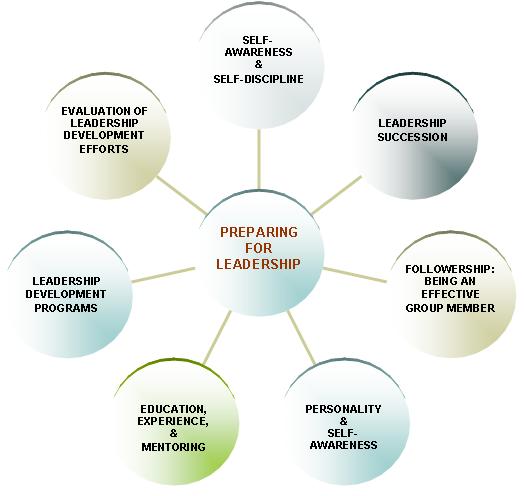 | Dalglish, Dubrin, and Miller (2006, pp. 452-474) describes key areas to prepare and develop leadership. These key areas are: |