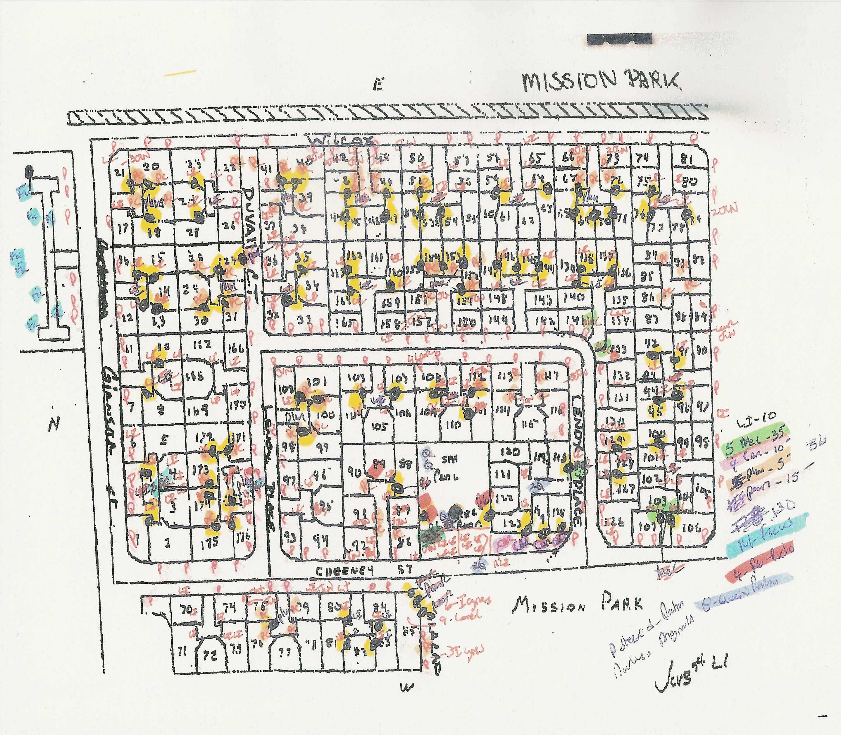 submittal requests. Our Property Management Company will conduct monthly walkthroughs (up to three hours per month) and may issue Mission Park Arch Committee Courtesy Notice. Historical Event: Mission Park Tree Trimming Project - December 13 to 15, 2004. EarthTech trimmed a total of 221 trees at $4788. (click here for map) Plum Tree Spraying to Minimize Fruiting - February and March 2005 - Cagwin & Dorward at $1100. Pool and Spa Concrete Replacement Project - Completed by Maxicrete on March 6, 2005. Courtesy of Citation Homes. Motorcourt PowerWash - May 18 through 31, 2005 by East Bay Mobile Wash at $2898.50. Pruning of Wilcox Avenue Soundwall - May 26 and 27, 2005 by Dinsmore at $1819.75. Pool Furniture Replacement - August 1, 2005 at $2070.06 Tan barking Project of Common Areas - December 2005 at $15K (Dinsmore quoted $12K initially) from Reserve account. Seal coating of Duvall Court and Lenox Place approved by the Board on January 31st, 2005: Not to exceed $4158 paid from Reserve account. |