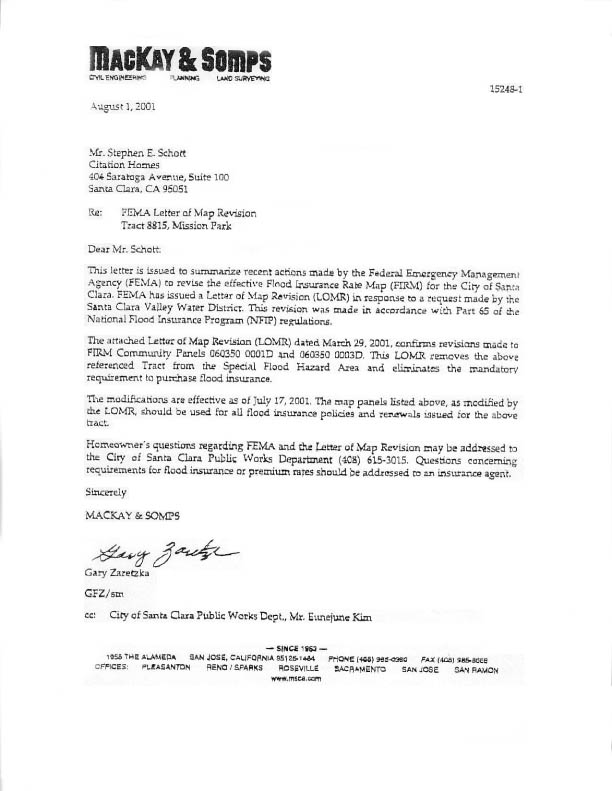 to Citation Homes. FEMA's Letter of Map Revision dated March 29, 2001