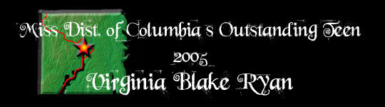 | MISS DIST. OF COLUMBIA'S OUTSTANDING TEEN 2005 Virginia Blake Ryan Talent: Vocal Platform: Advocating for Foster Children to Find Permanent Homes |