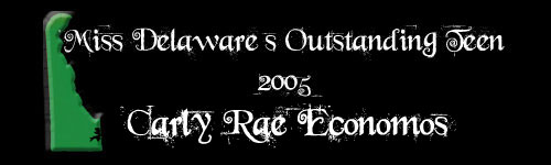 | MISS DELAWARE'S OUTSTANDING TEEN 2005 Carly Rae Economos Talent: Classical Vocal Platform: Cancer Relief and Support |