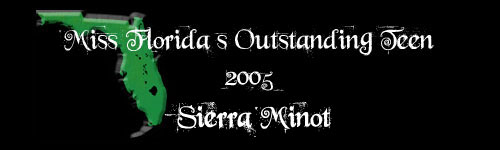 | MISS FLORIDA'S OUTSTANDING TEEN 2005 Sierra Minot Talent: Jazz Dance Platform: TrueLies: Teaching Teens to Love, Honor and Remain Pure |