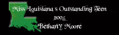 | MISS LOUISIANA'S OUTSTANDING TEEN 2005 Bethany Moore Talent: Vocal Platform: Mission Work |