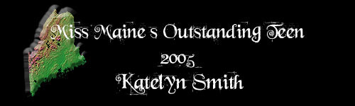 | MISS MAINE'S OUTSTANDING TEEN 2005 Katelyn Smith Talent: Tap Dance Platform: "BARN" Basic Animal Right Now-Providing a Home for Animals |