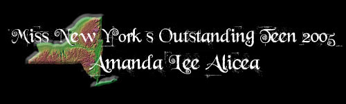 | MISS NEW YORK'S OUTSTANDING TEEN 2005 Amanda Lee Alicea Talent: Vocal Platform: Preventing Teenage Smoking |