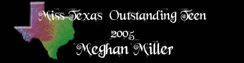 | MISS TEXAS' OUTSTANDING TEEN 2005 Meghan Miller Talent: Ventriloquism Platform: RESPECT - Creating a Community of Character |
