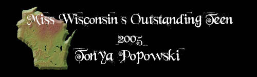 | MISS WISCONSIN'S OUTSTANDING TEEN 2005 Tonya Popowski Talent: Baton/Twirl Platform: Have a Purpose - Volunteer |