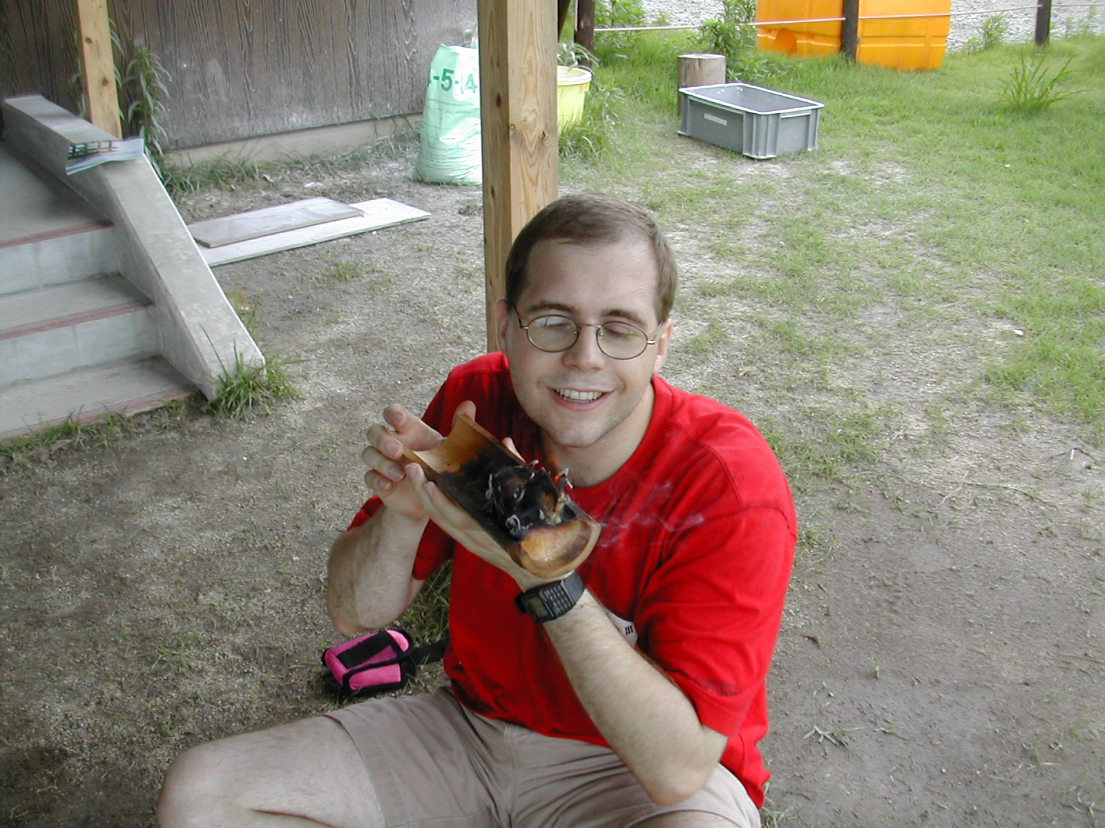 I made fire by spinning a stick around. By the time I got the flint lit, I could hardly move my arms. You would not beleive how proud I was at this moment. |
