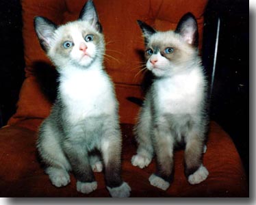 | We welcome all serious inquiries as well emails from people simply wanting to learn more about the Snowshoe breed. Just don't expect us to be non-biased. We're completely smitten with our Snowshoe Cats and kittens, and as far as we're concerned, there's only one word that describes them: WONDERFUL! The best way to reach me is via email at [email protected] |