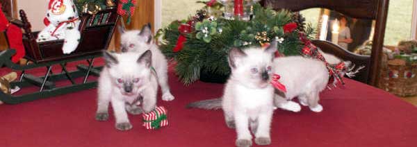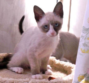 | Since 1994, we've taken special care to place our Snowshoe kittens in loving, responsible homes. Sales Policy All kittens are sold under a written contract. Essentially, it states that I am a good, upstanding, responsible breeder and you are a good, upstanding, responsible pet owner. Feel free to write me for a complete copy. Below are some highlights. Twelve Weeks Is the minimum age kittens must be before they leave here. Puppies might bond at an earlier age, but it doesn't work the same for kittens. Not only are they healthier for these extra weeks spent with mom, but they're also better able to adapt to new environments. Registration Papers All our kittens are registered with TICA, one of the premier cat fancy organizations and genealogical registries. We've worked hard to conform to its strict criteria for a "championship-level" Snowshoe and are proud of the many best of breeds our cats and kittens have achieved. When you get one of our Snowshoes, you will know that it doesn't just look like a Snowshoe; it is a Snowshoe . . with the delightful personality and quirky intelligence for which this breed is prized. Vaccinations & Health Guarantee Before leaving our home, all kittens receive their appropriate vaccinations, are dewormed and confirmed free of feline infectious diseases. We provide a veterinary health certificate, and ask you have your vet look them over within the first 72 hours of arrival. Declawing is simply not allowed. When kittens are socialized to use their scratch posts, it is not only harmful but unnecessary. We start them on the way to good scratching etiquette and ask you to continue this by having scratching posts ready at your home. Shipping We ship to approved homes within the U.S. and Canada. First preference is given to those who live locally or are willing to pick their kitten up in person. Neutering and Spaying We hold a neuter-spay deposit to ensure this procedure is done at the appropriate age (generally six months.) Pedigrees and deposit are provided upon proof of neuter/spay. If you plan to show your kitten, we can discuss other arrangements. Pricing Prices generally start at $550 for pet quality kittens and go up from there for show quality. Please write me to discuss. We'll consider selling our kittens with breeding rights under the right circumstances, but honestly, we're VERY picky. . . |