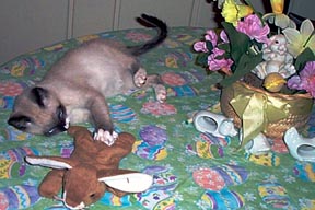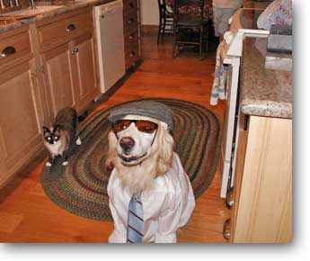 In addition to our cats, we have Cassie, our wonderful Golden Retriever. Cassie helps us raise our kittens. True to her breed, she's patient, forgiving and has a great sense of humor. All these traits come into play when she's mistaken for being an oversized cat toy by some mischievious kittens.