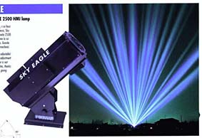 de cerca pero ... a poca distancia ya no se veía. Típico proyector utilizado para estos efectos. A la derecha, lámpara halógena HMI de 2500 W. (Le preguntamos si tiene conocimiento de unas pruebas realizadas con proyectores -láser o no- al aire libre, en la noche del día 31 de julio de 1995, luego de un apagón en la ciudad de Bariloche.) Persona "B": La prueba se hizo desde una discoteca de la costanera (de la ciudad de Bariloche - HJG). Explicáme por que razón deseás saber esto, pues se mas datos al respecto. (Le comentamos que se trata del famoso caso "ovni" del 31 de julio de 1995 donde hubo dos aviones involucrados, y que sospechábamos que alguien podía haber apuntado a los mismos con algún tipo de proyector) Persona "B": Te cuento que trabajé como DJ de la discoteca "X" desde los años 89 al 98. Recuerdo una oportunidad que se instaló un proyector de luz en la entrada de la discoteca y estuvo varios años allí. Apuntaba al cielo, emitiendo rayos de colores que giraban y se reflejaban en las nubes. Se que un día en que se cortó la energía en la ciudad, aproximadamente cerca de las 20 hs y la medianoche, se encendió el grupo electrógeno de la discoteca y también el proyector. No recuerdo la fecha en que ocurrió esto, pero se que fue muy comentado en esa oportunidad dentro de la discoteca por las cosas ''locas'' que se dijeron al respecto. Como por ejemplo llamados a radios sobre el avistaje de un "ovni" en el cielo sobre la ciudad. Quien creo que encendió eso fue uno de los técnicos de la discoteca, "A", o quizás "C". Es mas, hasta yo lo vi reflejado esa noche sobre el cielo y me di cuenta que era el proyector. ("B" nos pasa los datos de "C" para que lo contactemos. Le preguntamos si el proyector podía enfocarse manualmente hacia un avión en vuelo). Persona "B": Imposible que una persona haya apuntado hacia un punto en particular, pues hacía los efectos automaticamente y sin ningún control desde el interior de la discoteca. Lamentablemente no tengo muchos detalles técnicos del proyector, lo que sí se es que funcionaba automaticamente al encender una llave. Emitía luces de colores apuntando hacia el cielo, con varios rayos (entre 10 ó 15) haciendo un círculo que se agrandaba y achicaba y a la vez esos rayos giraban en el sentido del reloj. Tambien la misma estructura que contenía el proyector se movía de izquierda a derecha, cubriendo un cierto ángulo en el aire, pero nunca llegó a apuntar hacia el aeropuerto (¿y al espacio aéreo sobre el mismo?. Ver testimonio de "A" - HJG) y siempre apuntando hacia el lago en un angulo de 45º (ó más) hacia arriba con respecto a la superficie del lago. Actualmente se que no existe. (...) Ahora una pregunta mía, ¿A raíz de qué es esta investigación? ¿Causó algo? ("B" también nos habla de un laser) Persona "B": "(...) en otra oportunidad se instaló al equipo laser de la discoteca una fibra óptica que se conectaba a una pequeña 'caja de efectos' que estaba afuera, sobre la puerta de entrada principal. El laser hacía dibujos, figuras o letras sobre el piso de la entrada. Quizás se apunto en alguna oportunidad el rayo hacia la otra orilla del lago. No duro mucho tiempo afuera, después se lo mudó dentro de la discoteca, en el hall de entrada (...) es probable que estuviera afuera para esa fecha. No te aseguro nada, pasó mucho tiempo. Según recuerdo se mejoró el laser, se trajo nuevo software y hardware y además se le agregó ese dispositivo afuera, en la calle. Lo instaló un técnico taiwanés (...) ".
