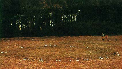 sobre el pasto, a veces acompañados de hongos en su periferia.