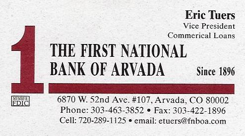 | The First National Bank of Arvada Eric Tuers, Comm. Loans (303)463-3852 [email protected] |