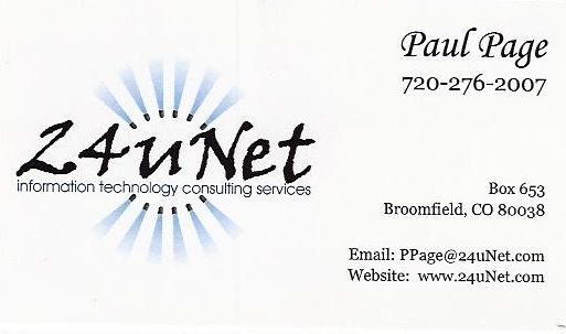 | 24uNet IT Consulting Services Paul Page (720) 276-2007 www.24unet.com [email protected] |