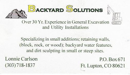 | Backyard Solutions General Excavations Lonnie Carlson (303) 718-1837 |