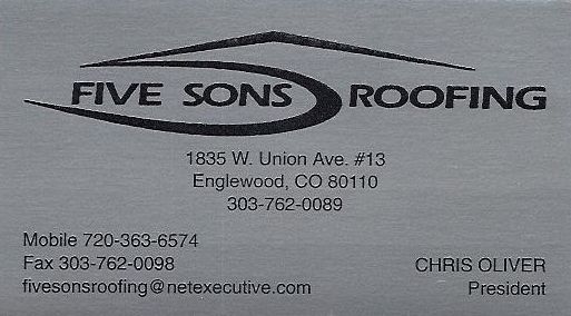 | Five Sons Roofing Chris Oliver (303) 762-0089 fivesonsroofing@ netexecutive.com |