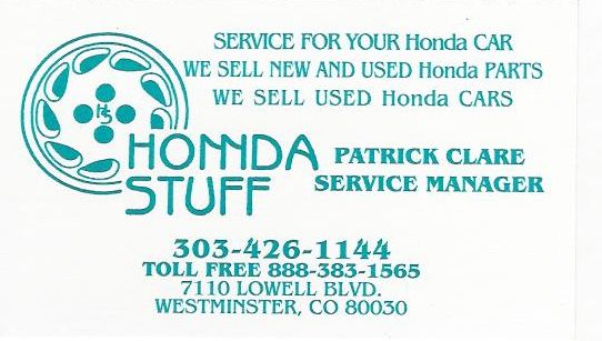 | Honda Stuff Skeet & Steve Hartman (303) 426-1144 (888) 383-1565 |