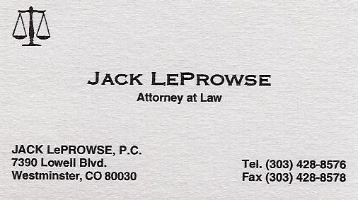 | Jack LeProwse Attorney at Law (303) 428-8576 |