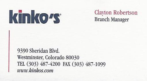 | Kinko's Clayton Robertson (303) 487-4200 [email protected] |