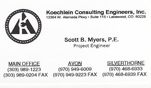 | Koechlein Consulting Engineers, Inc Scott Myers, P.E. (303) 989-1223 |