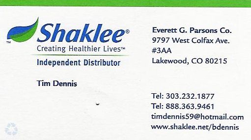 | Shaklee (303) 232-1877 [email protected] www.shaklee.net/bdennis |