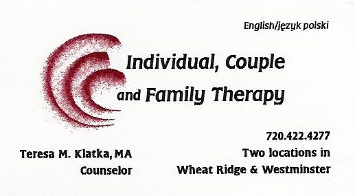 | Teresa M. Klatka, MA Counselor Individual,Couple and Family Therapy (720) 422-4277 |
