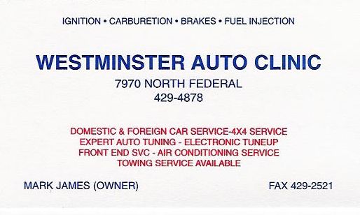 | Westminster Auto Clinic Mark James (303) 429-4878 |