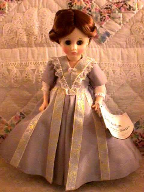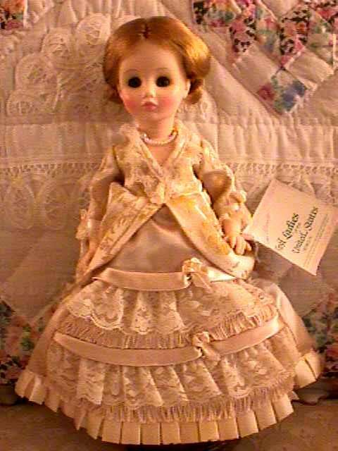The following five dolls are from the Madame Alexander First Lady series #4. All dolls have their original box & hang tags. These dolls are mint in the box. These dolls were made in 1985-1987.