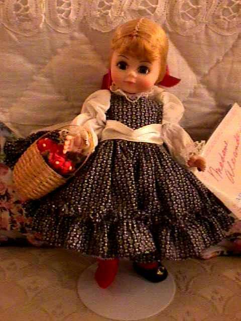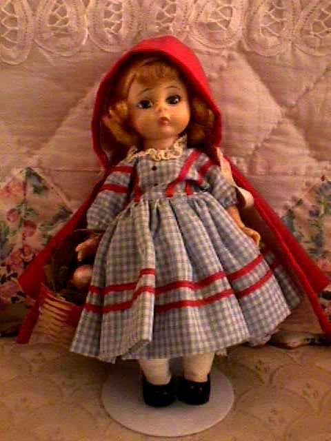 Red Riding Hood is an 8" bend knee walker. Sleep eyes doll is in excellent