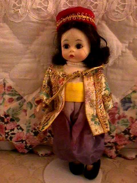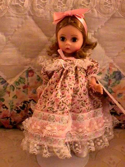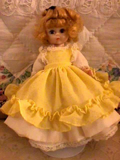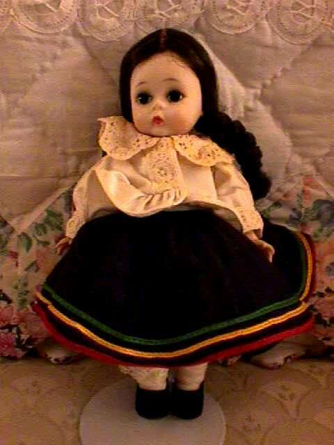 is an 8" bend knee jointed at the hip doll. Sleep eyes, she was only made