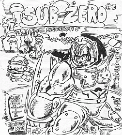 Chris, I got Sub-Zero #4. I only have four positive IDs on Wayne Brown, and they're all on the same page... is he also some of the background figures, like Mr. "Hey, I see it" between pages eight and nine (?!)? I give up! So tell me, is that Valley Girl thing for real? I got the impression that the real Valley Girls "died out" or moved on to bitter adult life... but I think I've got a handle on the next bunch, the "blank" generation (though I believe the term has been used before). You know the type... always getting drunk or stoned to avoid reality, spending their days "cruising" the strip in whatever cool vehicle they can find (not so much that it's fun to do but that they have nothing better to do), turn up their music really loud with friends or SOs because they have nothing to talk about. Ick! Well, gotta go... Russ Perry, Jr. P.S. You still got the Genesis, Duo, or VIC-20 for sale? What do you want for them (not that I have any money right now...)? (The Wayne Browns are everywhere! Some are just pictures of his head, so search hard [HINT- letters section... look on your head!]! I wrote the Valley Girl thing, but I didn't write this issue's edition! And no, the Valley Girls LIVE! Ha, ha, ha, ha, haaaa!!! The Genesis, Duo, and a few other of my systems are for sale, so just check with me [by phone... heh, heh] when you have some extra ca$h. As for the VIC-20, uh, I think my stepdad threw it away... or it got lost during the move. Bye, Russ!!! -Chris)