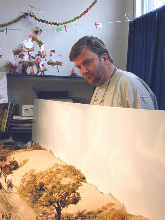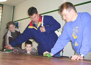 Beneden waren Vincent en Guillaume met de HSS en een GTW-diorama. Vincent knutselde ook...Een viertal foto's: |