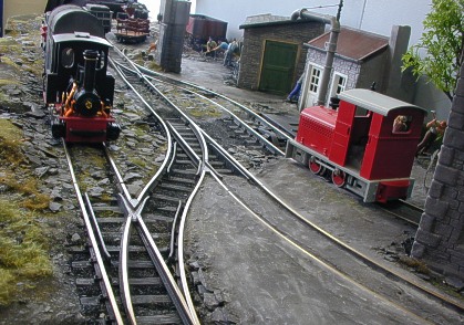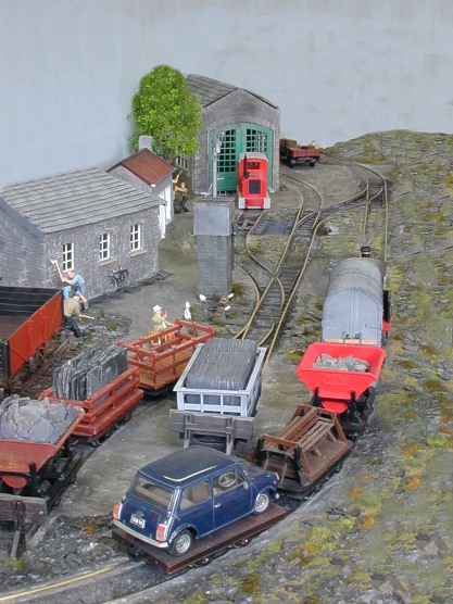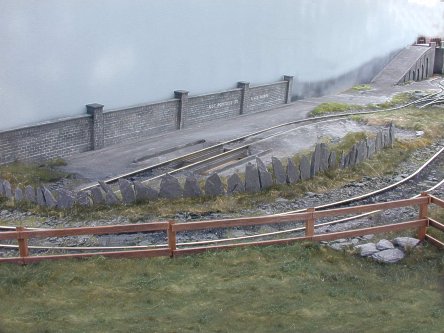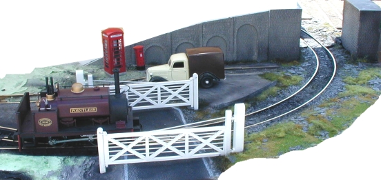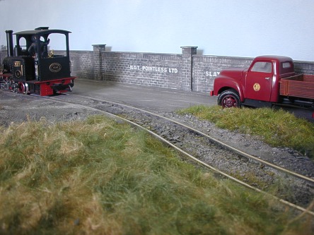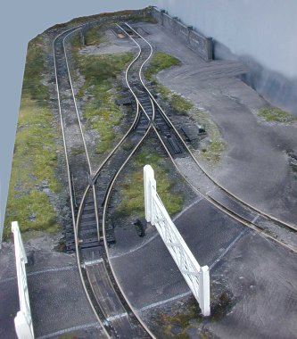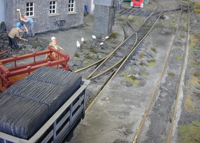 | June 2002: scenic work on the second part has started. Also the locomotive plates are ready. I now have my own loco-works !! Scenic work needs careful planning as everything has to be removable. Pointless is very flat when folded. |